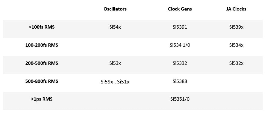 Reference Silicon Labs’ Phase Noise to Jitter Calculator tool to easily identify clocks and oscillators that meet your jitter requirement.