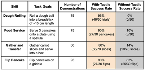 Table 1: A real-world performance comparison between tactile-enabled and vision-only learned policies. (Source: TRI)