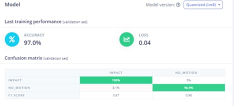 Figure 3: Edge Impulse can perform multiple analysis techniques, such as a confusion matrix of your model to determine the performance of the model. (Source: Green Shoe Garage)