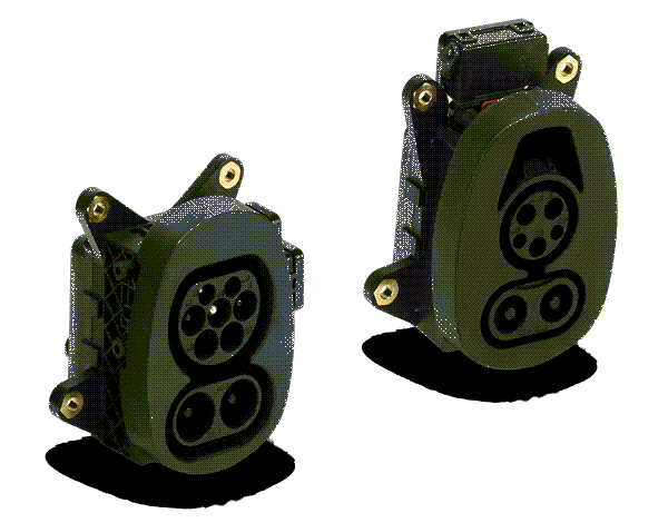 • CCS type 1 and CCS type 2 charging inlets: identical installation space, screw-connection point, and outer contour dimensions