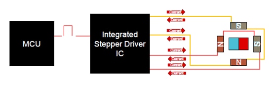 The stepper driver serves as the interface between the system microcontroller (MCU) and processor, which issues motion-related commands. The driver then executes these commands by directly managing the current and voltage to the motor (Figure 4) or by controlling external MOSFETs.