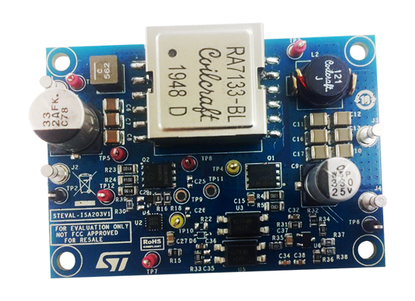 The STEVAL-ISA203V1 Evaluation Board provides a compact and efficient continuous conduction mode flyback converter design especially suitable for server and telecommunications equipment.